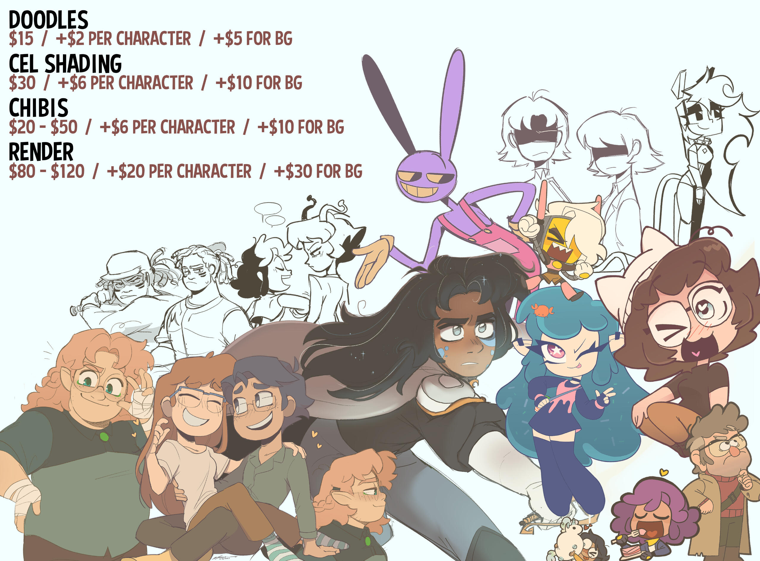 - I RESERVE THE RIGHT TO SHARE THE COMMISSIONED WORK ON MY SOCIAL MEDIA (UNLESS DISCUSSED OTHERWISE)